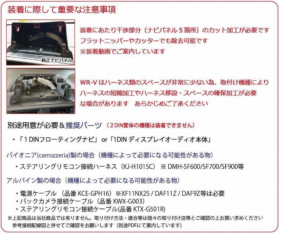 2024.12発売のホンダ WR-V (DG5型)専用のオーディオレス車両に1DIN筐体ナビやディスプレイオーディオを装着可能にする取付ブラケットキットVer2です。