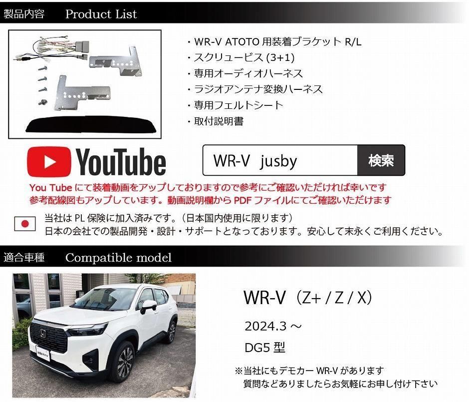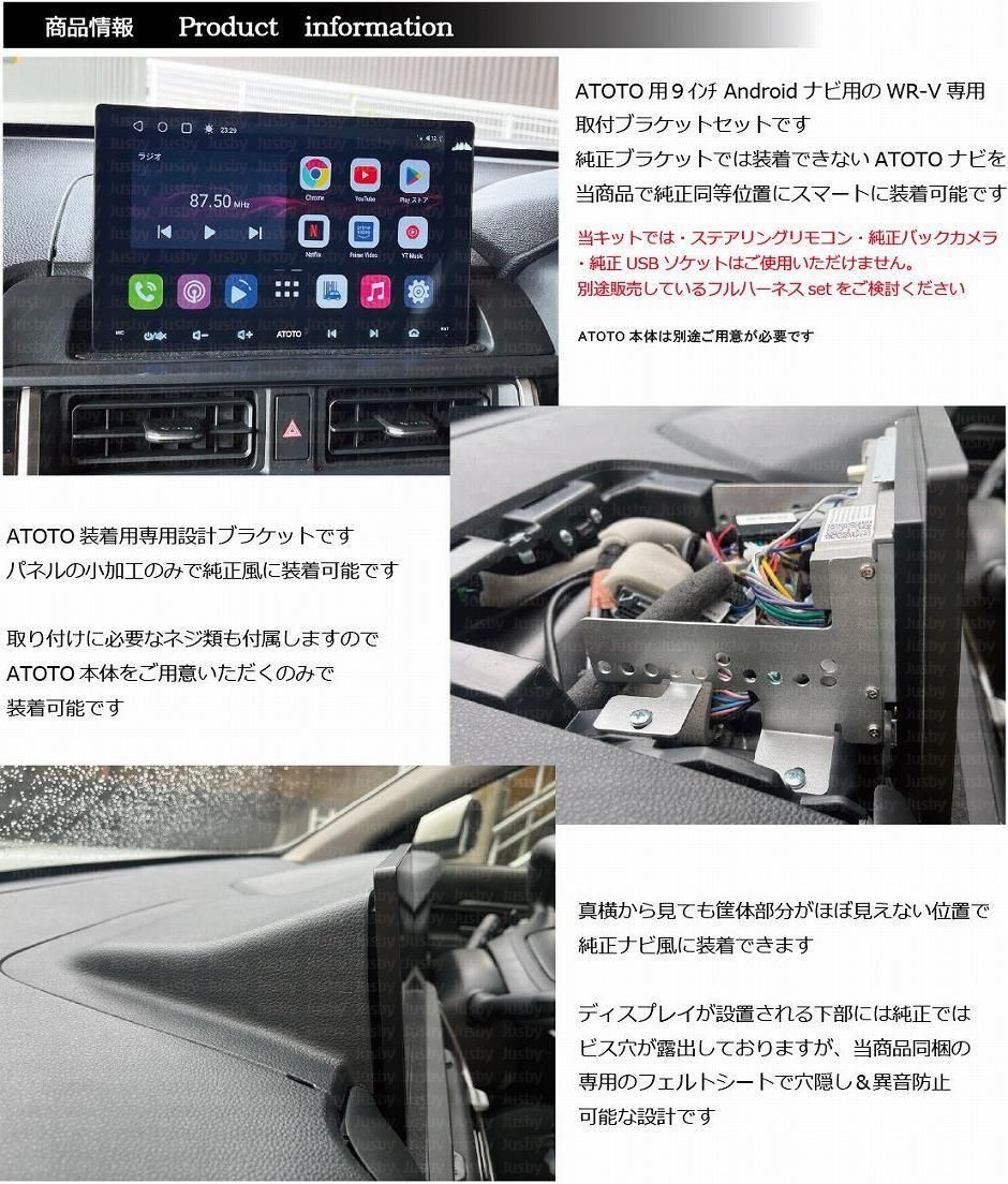 2024.12発売のホンダ WR-V (DG5型)専用のオーディオレス車両にATOTO 9インチを装着可能にする専用取付ブラケットキットVer2です