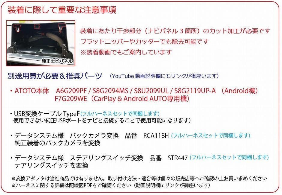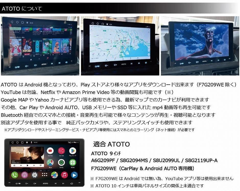・ ATOTO 10インチは車両パネルサイズの関係上未適合です