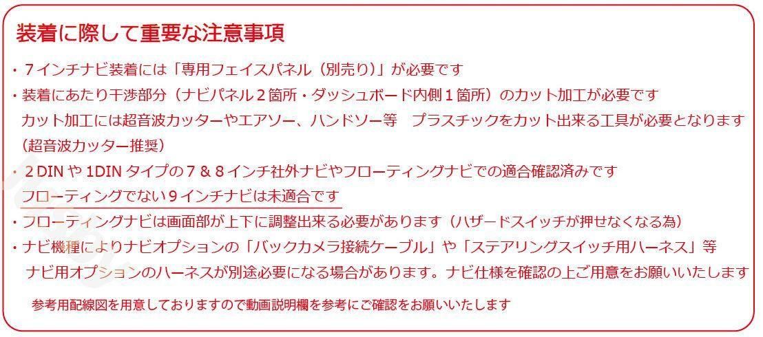 ・別途ナビ仕様によりハーネス類が必要となる場合があります。ナビ仕様をご確認の上、ご用意ください。
