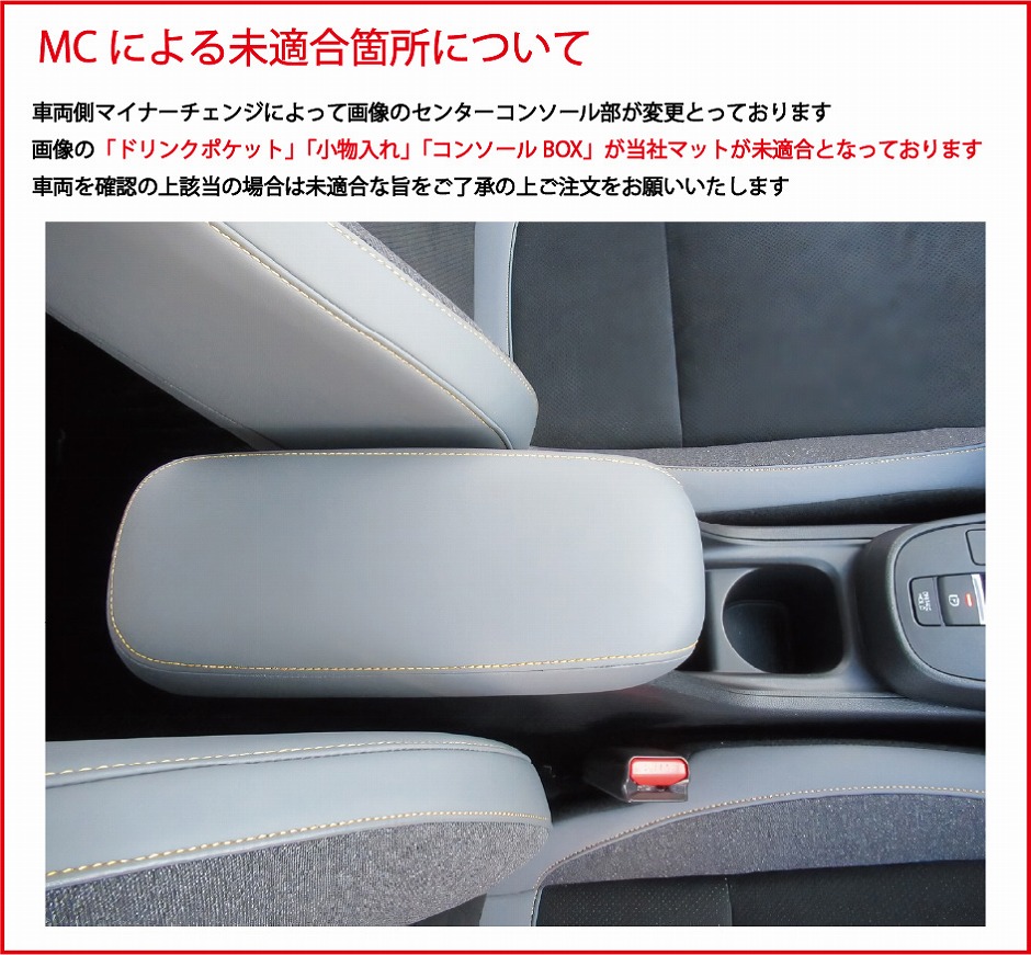 【注意事項】MC後の後期車両は「ドリンクポケット」「小物入れ」「コンソールBOX」が当社マットが未適合となっております