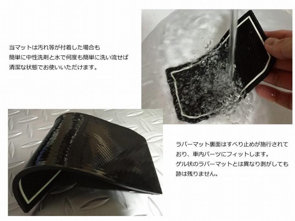 車内は走行中も非常に静かな車なため、当ラバーマットで運転中等の小物のカタカタ音を防止します。